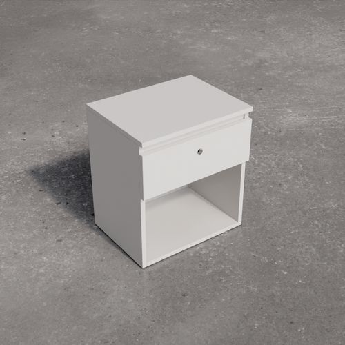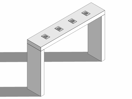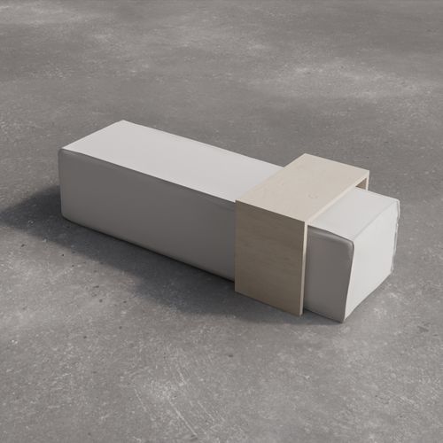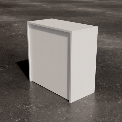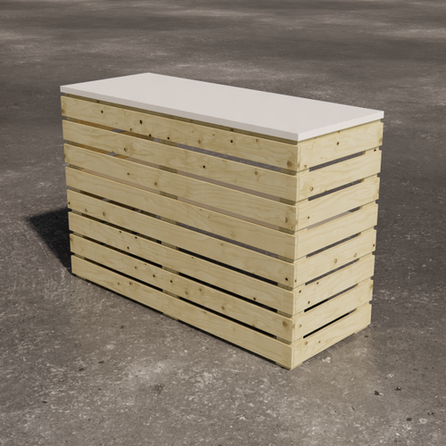 Spruce reception with visible slats. Shelf in melamine. Ideal for environments with a natural mood.