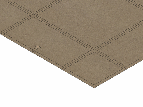 La struttura della pedana Wood è una evoluzione sapiente delle comuni pedane con sottofondo in truciolare. Si compone di un abaco di 4 quadrotte base delle dimensioni di 100x200 cm (centrale), 100x50 cm (di bordo), 200x50 cm (di bordo) e 50x50 cm (angolare), realizzate in legno truciolare ignifugo e caratterizzate dalla presenza di un reticolo fresato per l’alloggiamento dell’impianto elettrico; ogni quadrotta è dotata di particolari perni di fissaggio che permette la connessione con la quadrotta adiacente. Lo spessore complessivo della struttura è di 2.2 cm.